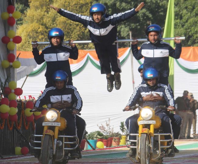 इस अवसर पर होमगार्ड्स स्वयंसेवकों ने निःशस्त्र युद्ध व आत्मरक्षा और मोटरसाइकिल दस्ता ‘दहाड़’ में शामिल होमगार्ड्स जवानों ने अद्भुत करतब दिखाते हुए विभिन्न कलाओं का प्रदर्शन किया।