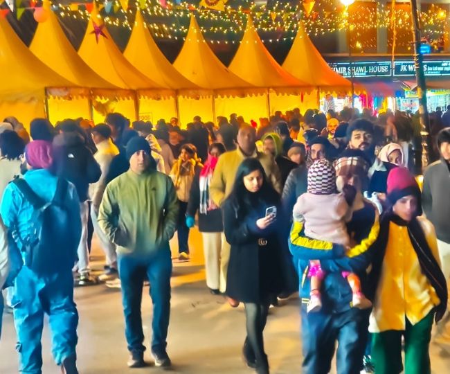 देवाल के लोहाजंग में नए साल के जश्न के लिए पर्यटकों की भारी भीड़ उमड़ रही है। हिल स्टेशन पर्यटकों से गुलजार हैं, जिससे स्थानीय व्यापारी उत्साहित हैं। हजारों पर्यटक रोज़ लोहाजंग बेस कैंप पहुंच रहे हैं, हालांकि कुछ बर्फ न होने से लौट रहे हैं। सभी होटल और होम स्टे बुक हैं और अतिरिक्त टेंट लगाए गए हैं। वन विभाग पर्यटकों की निगरानी कर रहा है ताकि शांतिपूर्ण माहौल बना रहे।